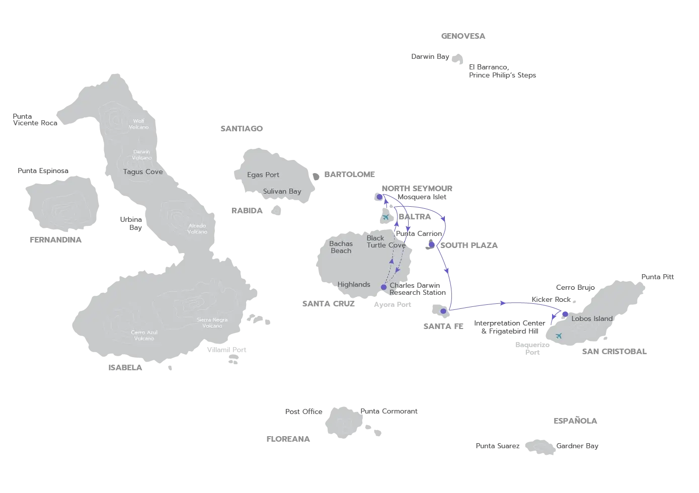 Experience unforgettable Galapagos adventures with our weekly departures. Our itineraries include full board, two daily guided excursions, and optional activities like snorkeling, kayaking, and dinghy rides. You can also extend your trip with diving programs and extra nights in Galapagos upon request.